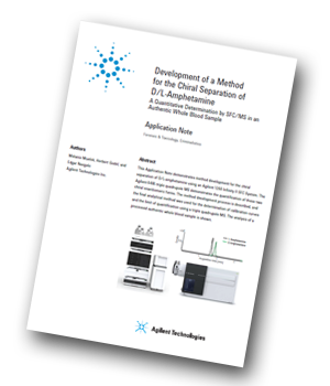 This application note from Agilent Technologies shows the development of an SFC method for the chiral separation of D- and L-amphetamine and the analysis of an authentic whole blood sample.