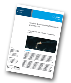 Agilent Technologies has produced an application note describing the absolute quantification of snake venom proteins. Using capillary LC to separate the proteins, followed by sulfur determination using isotope dilution ICP-QQQ, accurate concentrations were obtained without protein-specific standards.