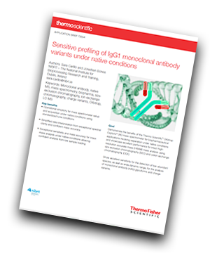 Download application brief about biopharmaceutical applications involving separation under native conditions and performance for intact high-resolution accurate-mass (HRAM) mass analysis.