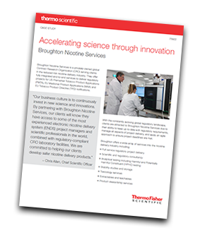 Single platform instrument control, along with highly robust systems from Thermo Fisher Scientific enable Broughton Nicotine Services to achieve its commitments to clients with increased confidence of the speed and quality of its committed deliverables.