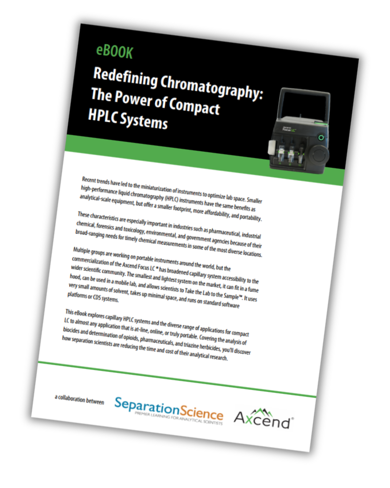 By using minimal solvent, occupying minimal space, and seamlessly integrating with standard software platforms or chromatography data systems (CDS), the Axcend Focus LC® represents a significant leap forward in analytical capabilities. This eBook delves into the innovative world of capillary HPLC systems, exploring their diverse applications in a wide range of settings—whether at-line, online, or in the field.
