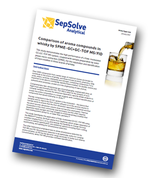SepSolve Analytical has produced an application note demonstrating the high performance of a flow-modulated GC×GC–TOF MS system, coupled with sample preparation by solid-phase micro-extraction (SPME), for the separation and identification of trace volatiles in three brands of whisky.