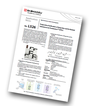 In this application news, we demonstrated the preparative purification of Ibuprofen, a nonsteroidal anti-inflammatory drug (NSAIDs), and its analogs using the Prominence™ UFPLC. The drying times of the samples collected from UFPLC and preparative LC were compared; drying of samples from UFPLC was approximately 9 times faster. Furthermore, with the removal of nonvolatile salts and buffers in UFPLC, pure ibuprofen crystals were recovered.