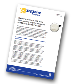 SepSolve has produced a study demonstrating the separation and identification of flavour compounds in milk using high-capacity sorptive extraction and TD–GC×GC–TOF MS/FID. As well as comparing the profiles of ten milk samples, the focus is on the ability of the analytical setup to physically separate components that would co‑elute in a one‑dimensional GC system.