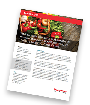 This application note demonstrates how simultaneous determination of all elements of interest in a wide range of food samples can be efficiently and rapidly performed using the Thermo Scientific™ iCAP™ RQ ICP-MS.