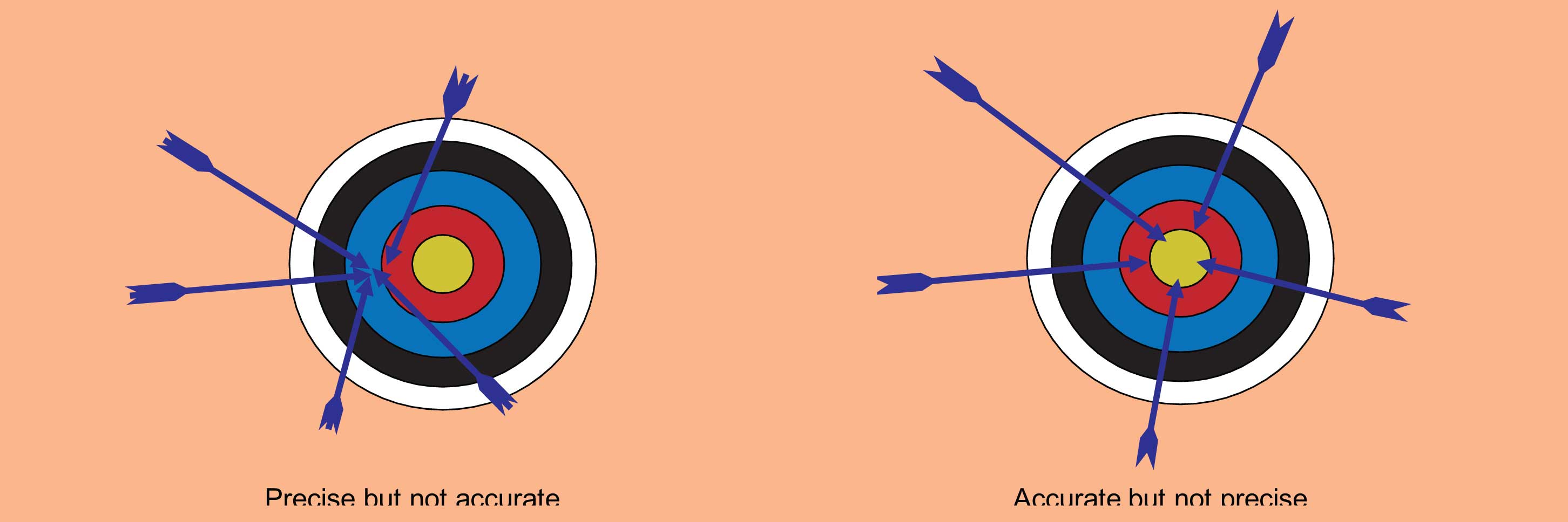 The accuracy of an analytical result (Figure 2) reflects how close it is to the true value. Accuracy is the goal of both qualitative (what is it?) and quantitative (how much is there?) analyses. However, many practices, instrument limitations, systematic and random errors conspire to reduce the accuracy one can actually attain. As is the case with most measurements, statistics are used to indicate the level of accuracy of a given result, and thereby give the level of “confidence” one might have in the result (figure 2).