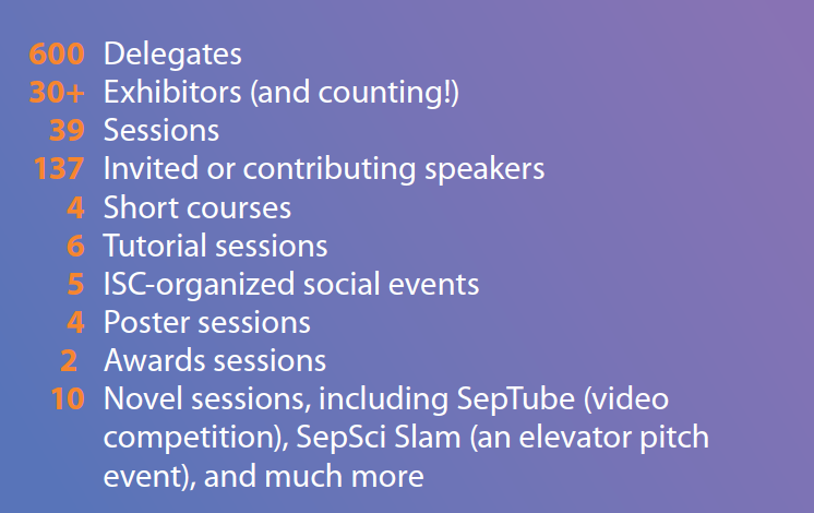 For more experienced separation scientists, the diverse and high-quality range of plenary lectures and speakers across a host of topic areas represents an ideal opportunity to update knowledge on novel approaches to analytical problems as well as the latest developments in analytical technology and methodology. The key combination of academic and industrial speakers ensures that advanced research and applied topics are represented, ensuring a vision of the future combined with practical information that can be applied as soon as attendees return to their laboratory.