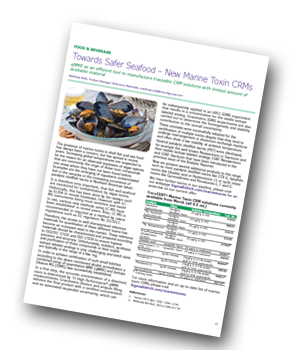 The presence of marine toxins in shell fish and sea food has always been a concern, but has spread in recent years. Increasing global temperatures are suspected to be the reason for an observed expansion of algae species that are commonly the origin of these toxic compounds into areas where they have not been found before. Examples are the emerging of ciguatoxin contaminated fish in the canaries or the increasing occurrence of paralytic shellfish toxins in Northern American lakes.