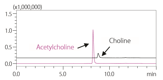 Choline, which is a structural element of cell membranes, and acetylcholine, which is known as a neurotransmitter, are both familiar compounds in the field of bioanalysis. Since acetylcholine is biosynthesized in the body from choline, it is possible to estimate the quality of internal activity by monitoring both of these compounds. This article focuses on the SFC analysis of these compounds in a rat cerebrospinal fluid sample by direct injection of the cerebrospinal fluid to the Nexera UC SFC system.