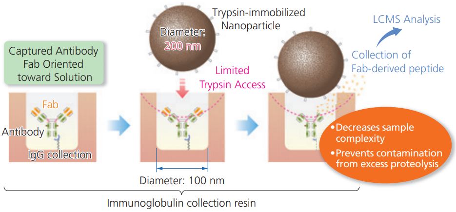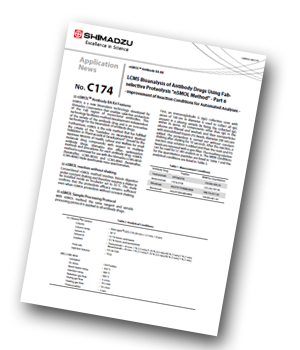 To resolve these complications, Shimadzu developed a breakthrough LC-MS pretreatment technology, nSMOL (nano-surface and molecular orientation limited proteolysis). The nSMOL technology allows Fab-selective limited proteolysis using nanotechnology, minimizing sample complexity and matrix-induced complications. Shimadzu’s continuous effort to optimize this technology allows it to be conducted with an easy-to-use protocol and produce highly repeatable results.