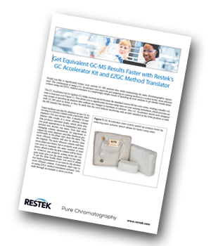 Would you like to significantly reduce your current GC-MS analysis time while maintaining the same chromatographic separation? The combination of using a GC Accelerator oven insert kit and adapting an existing method to a scaled-down, more efficient column using Restek's EZGC method translator is a surprisingly simple means of speeding up your analyses to get similar results faster.