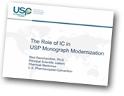 In 2011 the USP embarked on a monograph modernization initiative, aligned with the methods in other pharmacopeias, the International Conference on Harmonization (e.g., ICH Q3A and Q3B), and current FDA guidance. Ion chromatography (IC) plays a key role in drug monograph modernization because it offers a significant improvement to existing active pharmaceutical ingredient, impurity and counterion assays, with advantages in speed, reproducibility, accuracy, safety and cost-effectiveness.